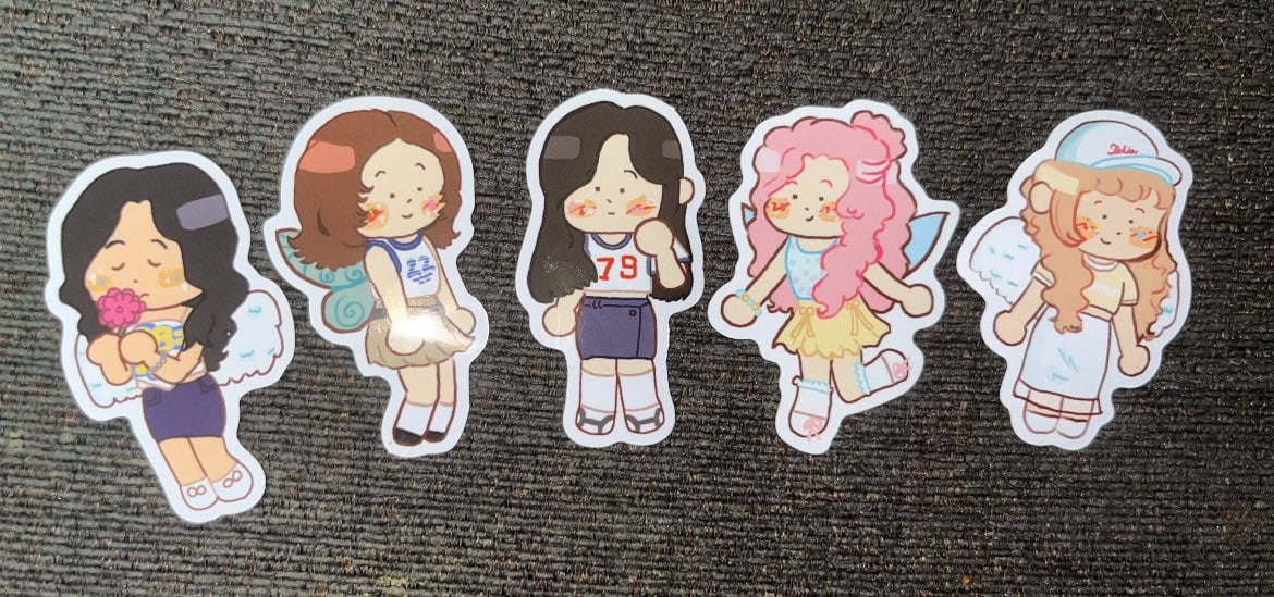 offered as individual stickers of hyunjin, yeojin, vivi, gowon, and hyeju or a full set