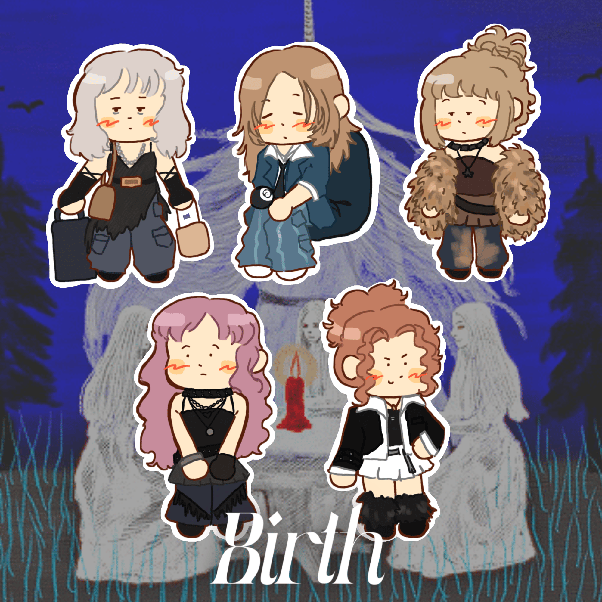 offered as individual stickers of heejin, haseul, kim lip, jinsoul, and choerry or a full set