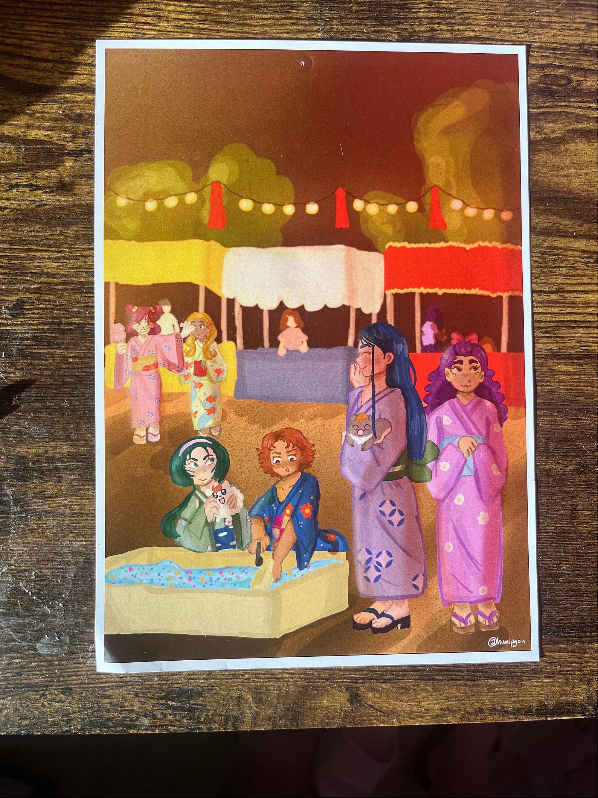 7” x 10” print with bleed. super cute art of yes! precure 5 gogo characters at a summer festival.